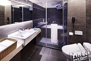 經典雙人房一杯好茶、一部動人電影,靜躺浴缸裡享受著。